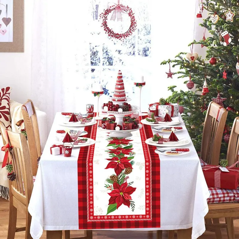 2024 Christmas Table Runner Cloth Merry Christmas Decoration for Home Tablecloth Xmas Cristmas Ornament Navidad New Year 2025