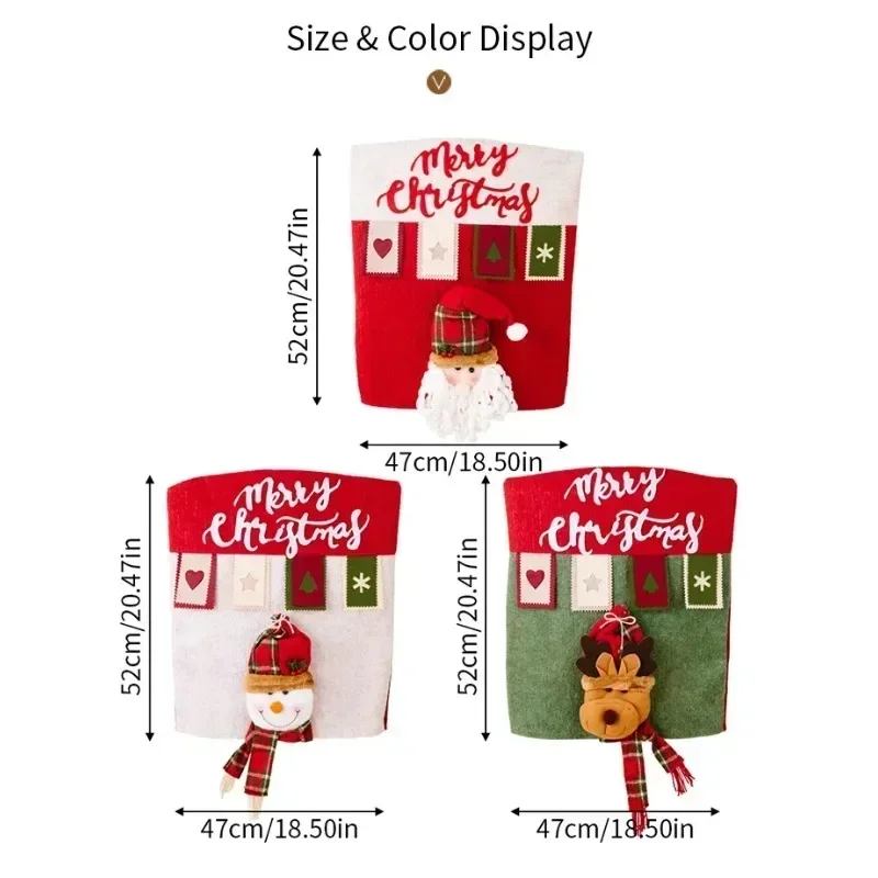 2.Perfect Size: About 52x46x5cm/20.47x18.11x1.96inch, suitable for most chairs. The Christmas chair cover directly covers the chair, which is a quick and simple way to decorate your house.