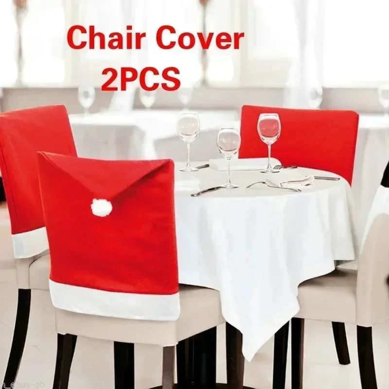 Red Santa Claus Hat Christmas Chair Cover Chair Back Cover Merry Christmas Decor Home Xmas Gift Decor New Year