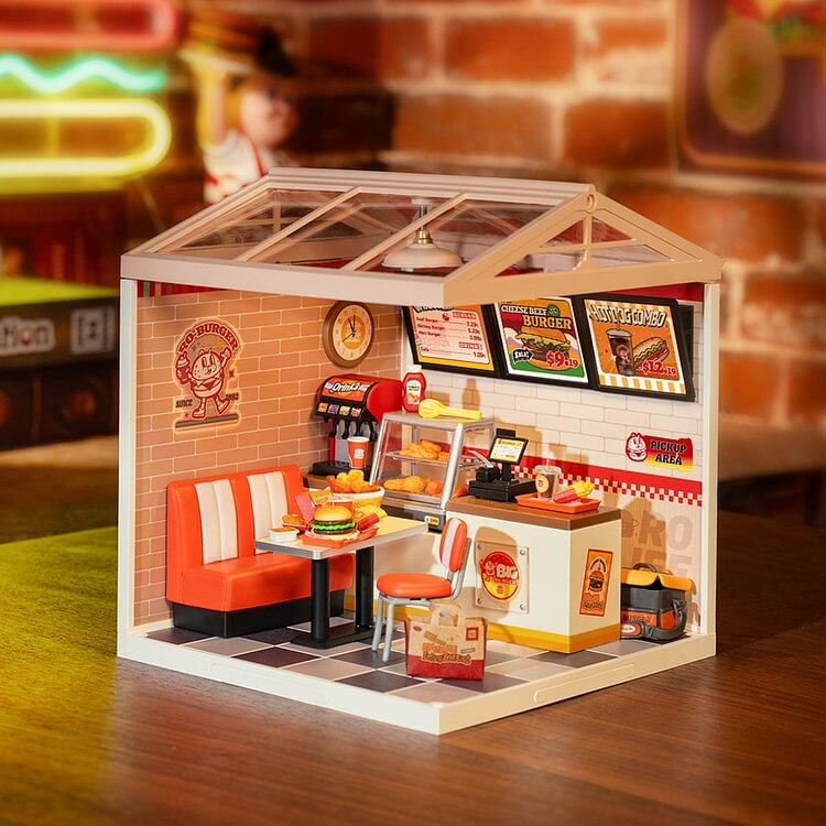 - Product Name: ROBOTIME DIY Miniature Dollhouse Kits Yum Burgers with LED Building Craft